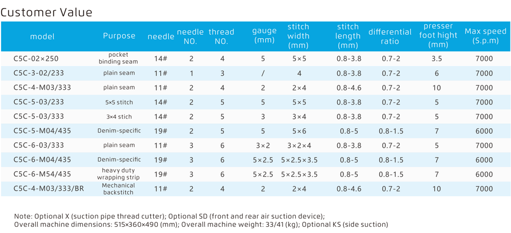Three-modes seamless switching quick adjustment for thin, medium and thick materials Enables free switching between A type (for thin materials), M type (for medium materials) and H type (for thick materials). Oil-free head technology: