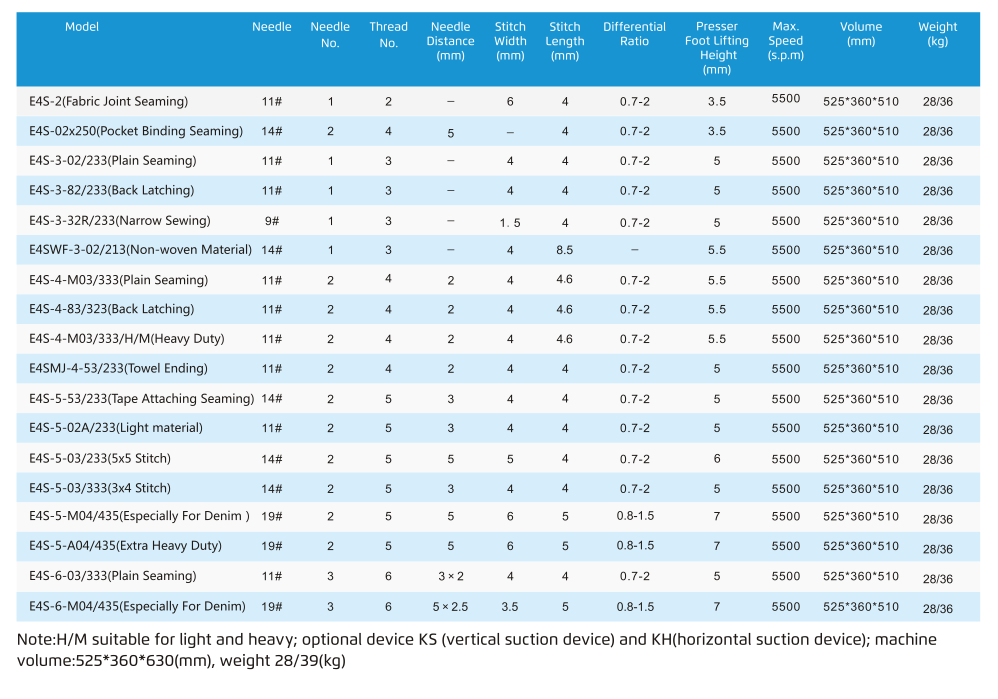 Through light,medium,heavy three modes adjustment,can convert from A type-light material,M type-medium material to H type -heavy material freely ; suitable for mesh,knitting,denim,etc different kinds of order demands. Needle bar adopts full sealed suction oil-return device,special oil seal for the feed bar,prevent oil outside efficiently and ensure the improvement of the product quality.
