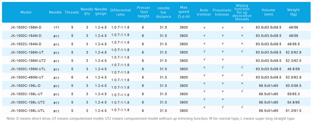 Maximum presser foot height can reach 8mm. You can get beautiful stitch no matter for super light stockings or bone-crossing sport pants. Large operation space is suitable for sleeve sewing, neckline sewing Super large operation space is available and its maximum length can reach 380mm.
