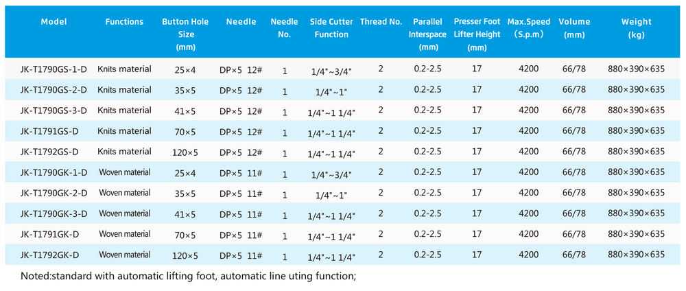 The Jack JK-T1790G is a high-speed, computerized buttonhole sewing machine engineered for efficiency and precision. It uses a servo-drive motor with a sleek control panel and supports automatic finishing features like thread trimming and presser-foot lifting.